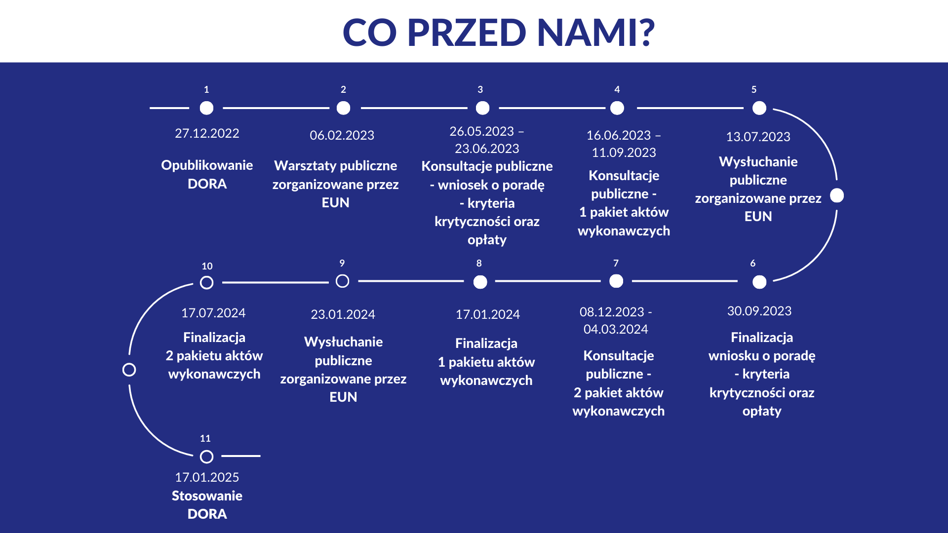 17 stycznia 2024 roku EBA, EIOPA i ESMA opublikowały pierwszą część finalnych wersji projektów aktów wykonawczych związanych z DORA.