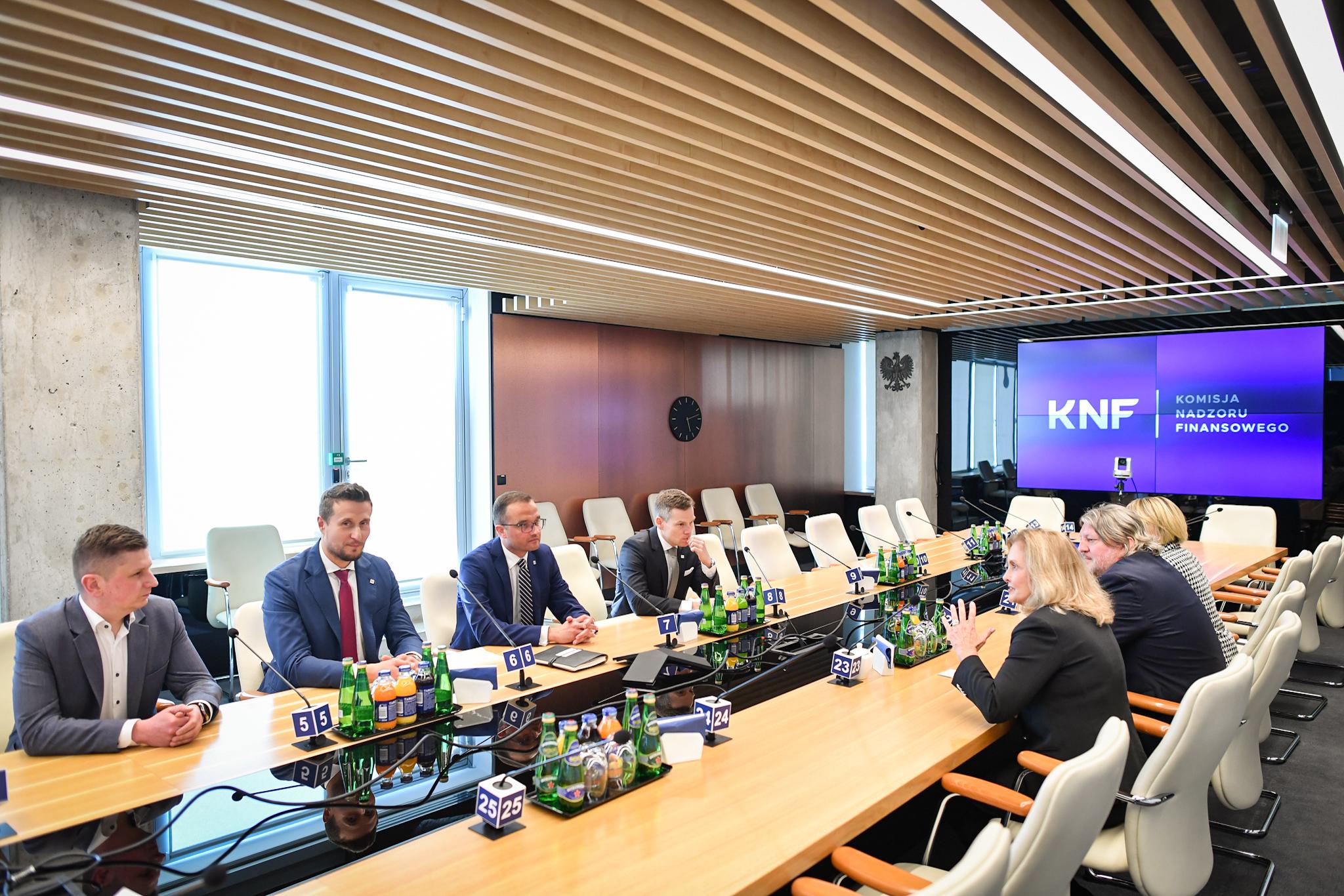 Jacek Jastrzębski, Chair of the KNF Board, met with Sharon Easky, Chair of the Supervisory Board of PrivatBank – the largest Ukrainian bank. During the meeting, the current situation in Ukraine was discussed, with a particular focus on the Ukrainian banking sector. The Chair of the Supervisory Board of PrivatBank thanked the Polish supervisory authority and banks for the assistance provided to PrivatBank.
