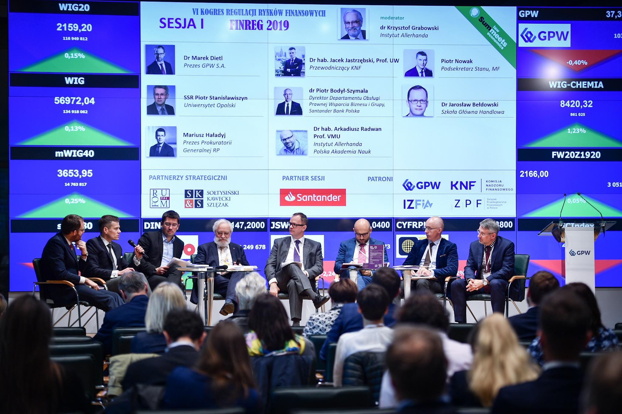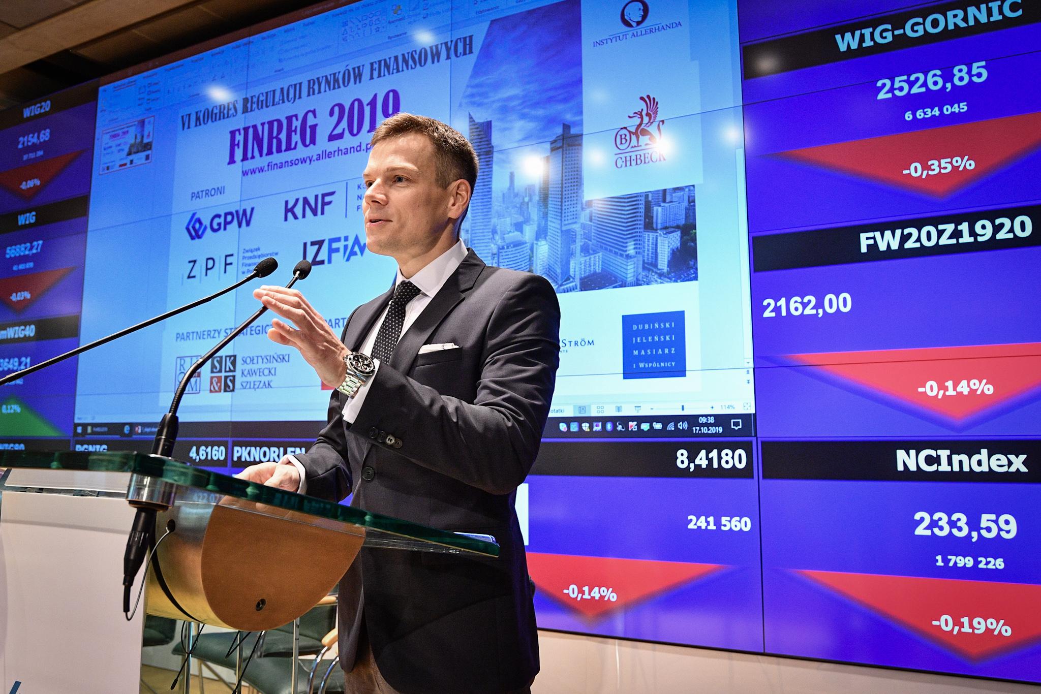 Przewodniczący KNF Jacek Jastrzębski wygłosił przemówienie inauguracyjne podczas VI Kongresu Regulacji Rynków Finansowych FinReg 2019. Temat wystąpienia to "Polityka i praktyka nadzorcza Komisji Nadzoru Finansowego: rola nadzoru w rozwoju rynku finansowego".