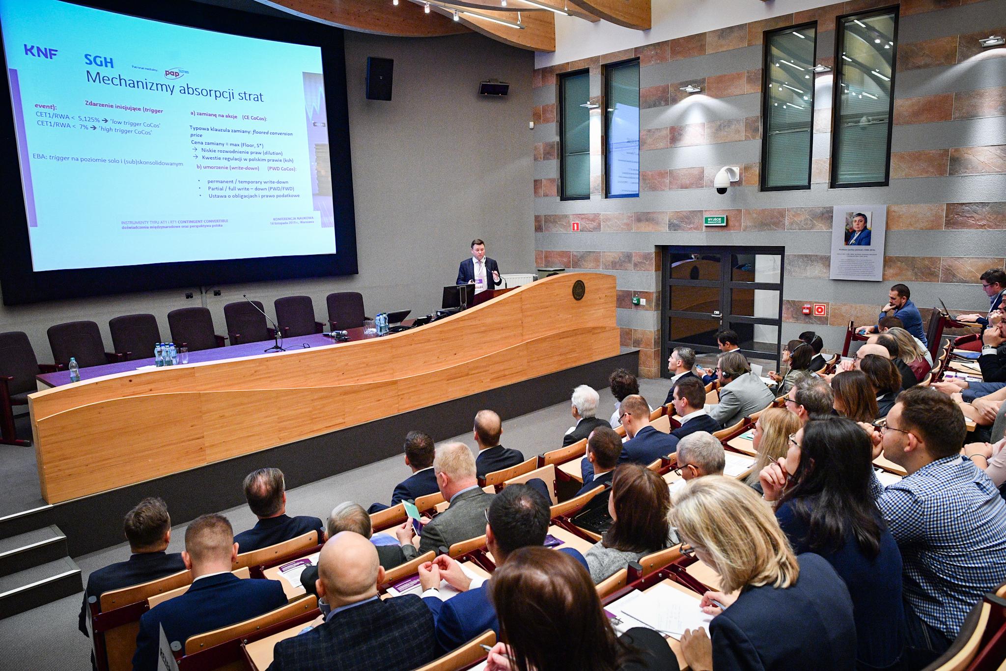 14 listopada w Warszawie odbyła się międzynarodowa konferencja organizowana wspólnie przez Urząd Komisji Nadzoru Finansowego oraz Szkołę Główną Handlową w Warszawie poświęcona instrumentom zaliczanym do kategorii kapitałów bankowych warstwy AT1, zwanych contingent convertibles (tzw. CoCos). Konferencję otworzył JM Rektor Szkoły Głównej Handlowej w Warszawie dr hab. Marek Rocki, prof. SGH oraz Przewodniczący KNF dr hab. Jacek Jastrzębski, prof. UW.