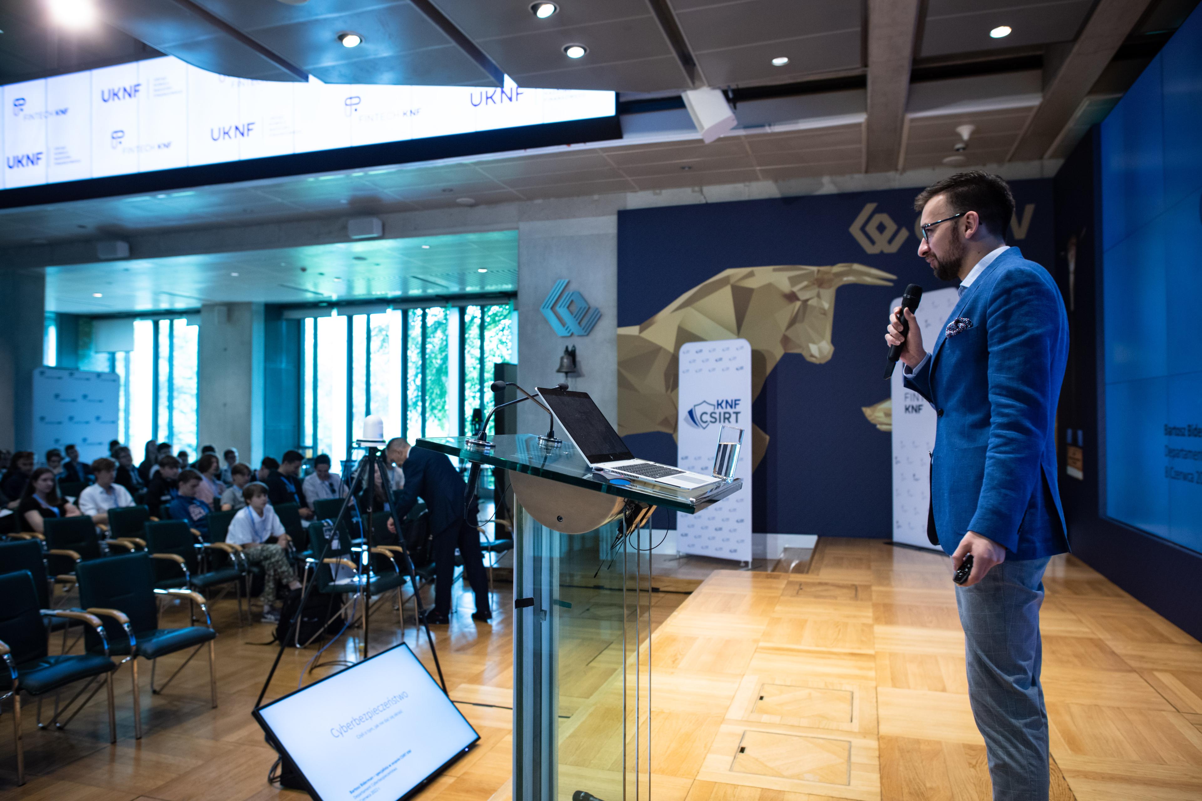 Kolejny panel poprowadził Bartosz Biderman z Departamentu Cyberbezpieczeństwa. Opowiedział o zasadach bezpieczeństwa w zakresie poruszania się w Internecie oraz o zasadach bezpiecznego korzystania z usług finansowych.