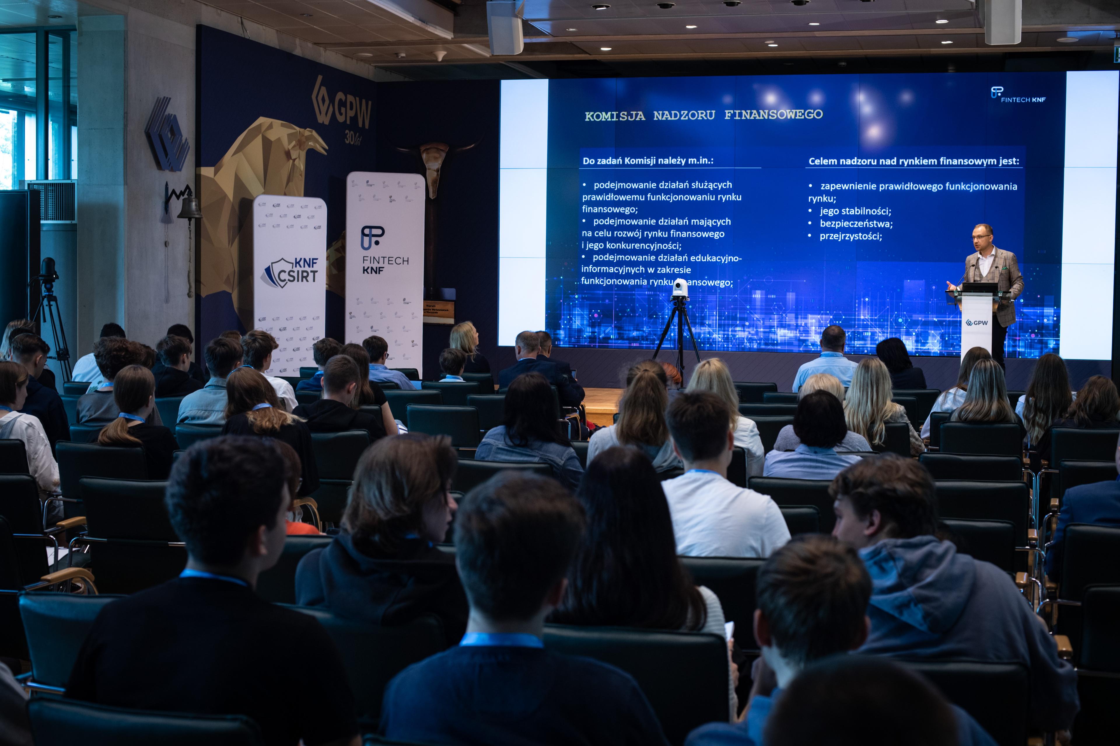 W środę, 8 czerwca w Sali Notowań Giełdy Papierów Wartościowych w Warszawie odbyło się już drugie, hybrydowe spotkanie „Innowacje i cyberbezpieczeństwo na rynku finansowym”. Jest to działanie realizowane przez Urząd Komisji Nadzoru Finansowego, w ramach projektu Centrum Edukacji dla Bezpieczeństwa Rynku Finansowego CEBRF. W spotkaniu brali udział uczniowie warszawskich szkół. Łącznie w spotkaniu hybrydowym wzięło udział ponad 200 osób. W spotkaniu uczestniczyła również Renata Kozłowska – Zastępca Burmistrza Dzielnicy Żoliborz oraz Artur Nawrot - Naczelnik Wydziału Oświaty Urzędu Dzielnicy Żoliborz.