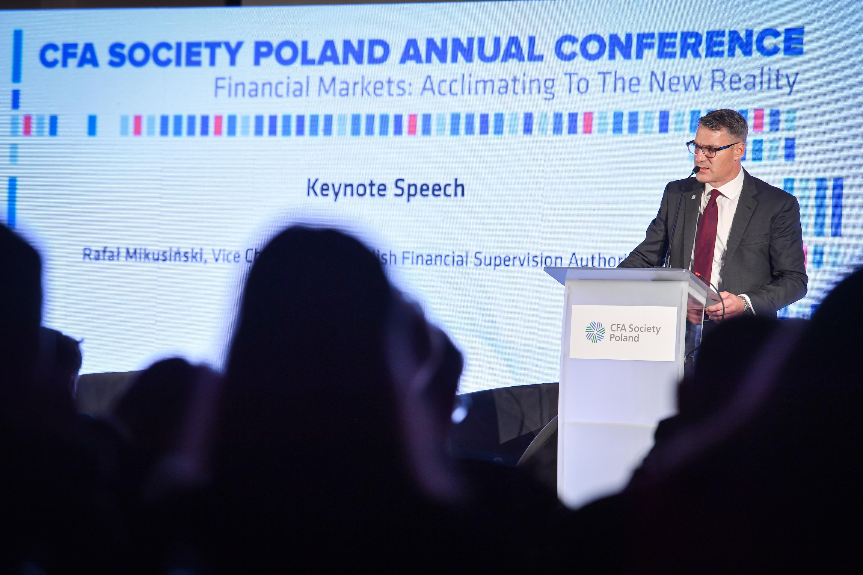 Rafał Mikusiński, Zastępca Przewodniczącego KNF odpowiedzialny w Urzędzie KNF za nadzór nad rynkiem kapitałowym, wystąpił podczas CFA Society Poland Annual Conference – Financial Markets: Acclimating to the New Reality.