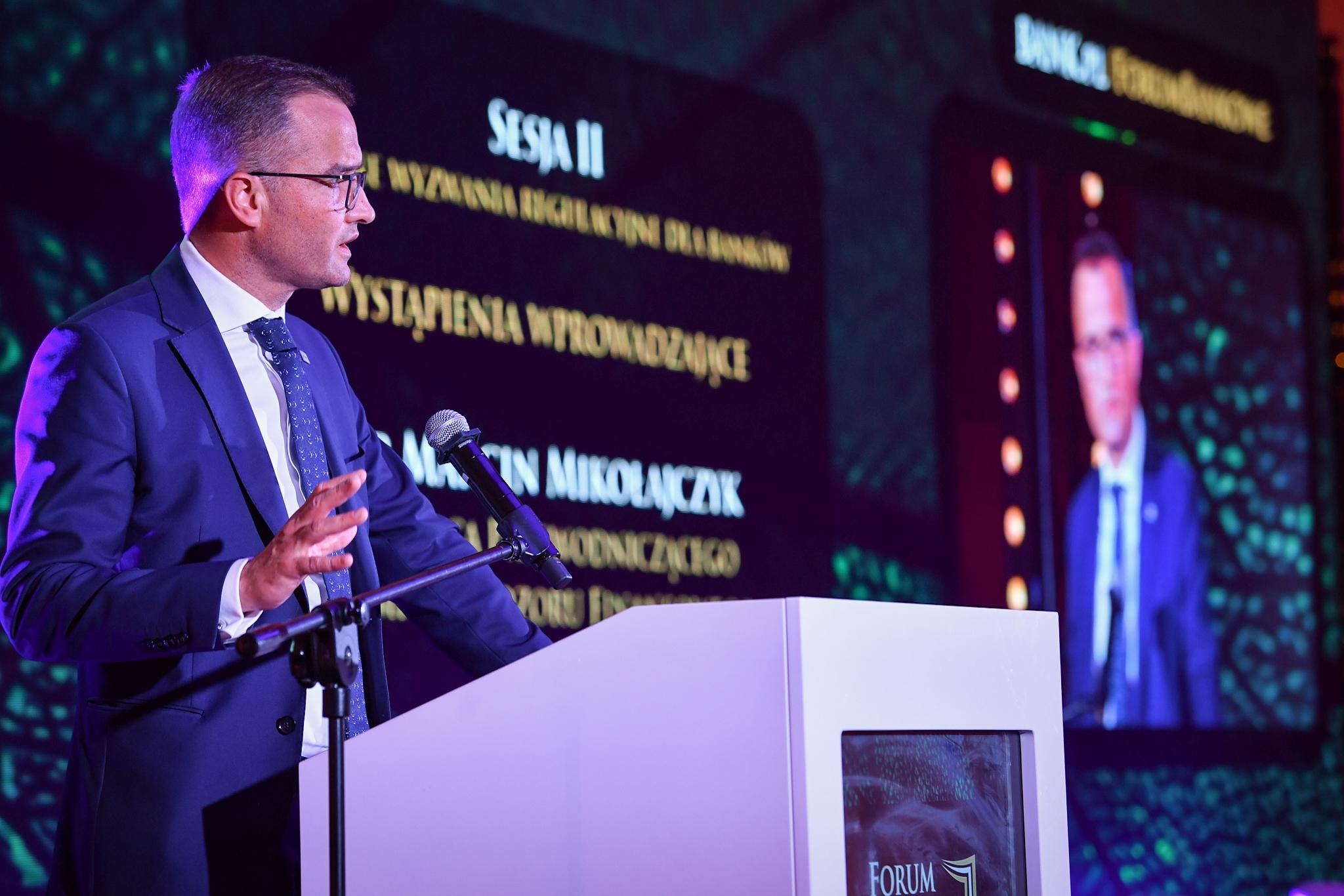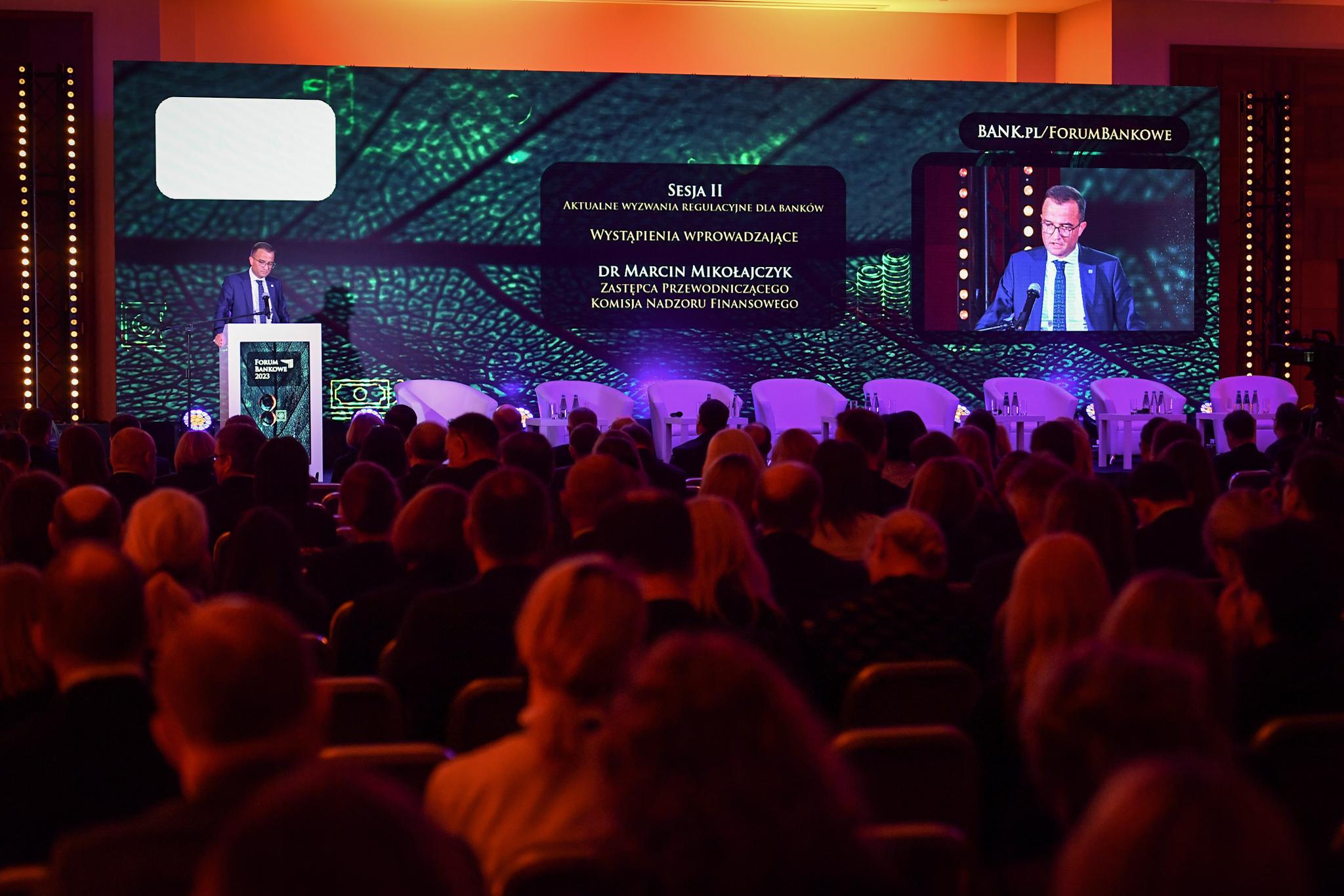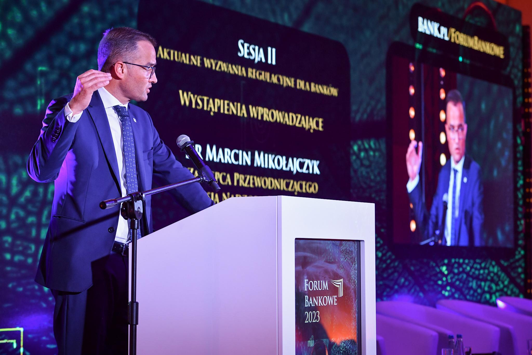 Marcin Mikołajczyk, Zastępca Przewodniczącego Komisji Nadzoru Finansowego odpowiedzialny w Urzędzie KNF za nadzór nad sektorem bankowym, wystąpił podczas Forum Bankowego zorganizowanego przez Związek Banków Polskich. Wygłosił wystąpienie wprowadzające przed panelem dyskusyjnym „Aktualne wyzwania regulacyjne dla banków, w szczególności w kontekście wdrażania reformy wskaźników referencyjnych. Potrzeba stabilności warunków prowadzenia działalności bankowej i pewności kontraktowania”.