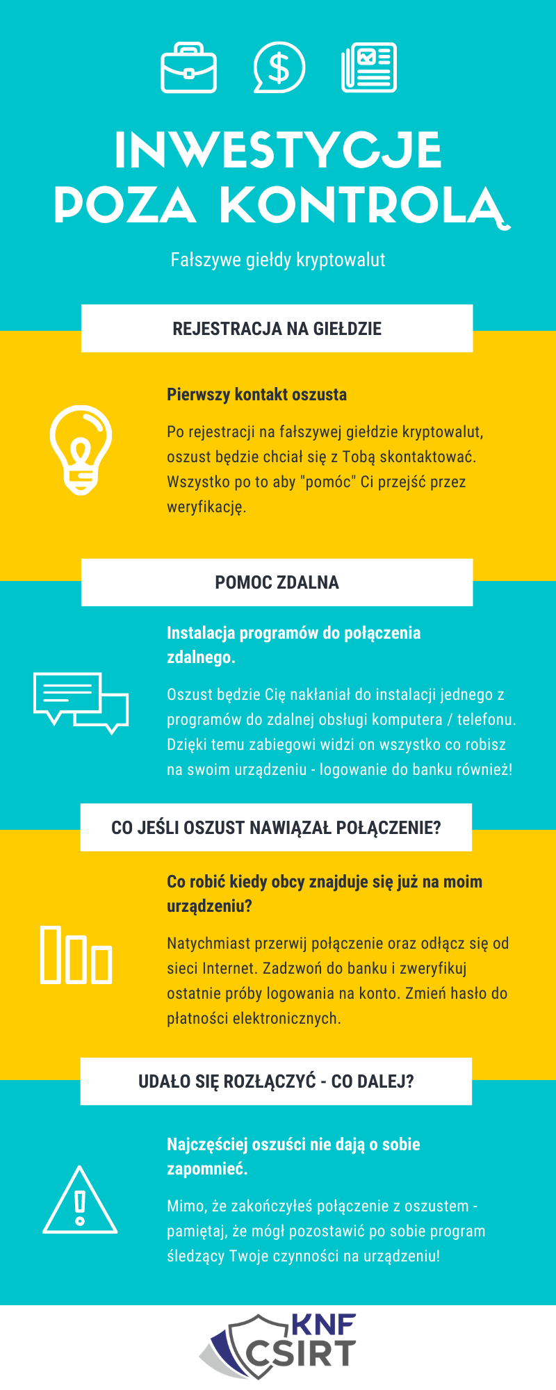Aby uniknąć powyższych sytuacji, zalecamy zachowywać podwyższoną ostrożność przy kontaktach z osobami, które obiecują wysokie zyski w krótkim czasie.