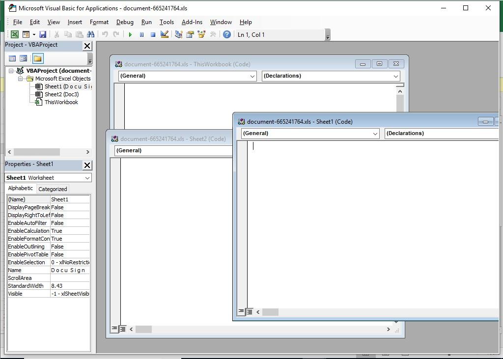 Można znaleźć inne odmiany podobnych plików Excel wykorzystywanych do pobierania złośliwego oprogramowania. Arkusze te cały czas ewoluują dodając nowe metody utrudniające analizę – np. ukrywanie arkuszy (arkusze mogą być ukryte na 2 sposoby – hidden oraz very hidden), sprawdzanie rozdzielczości ekranu, wykrywanie, czy makro jest debugowane. W związku z tym należy być czujnym i uważać na to, co jest wykonywane przez skrypt.
