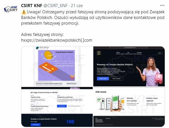 CSIRT KNF w ramach pracy operacyjnej w II kwartale 2021 zgłosił do blokady 1,342 niebezpiecznych domen phishingowych.
