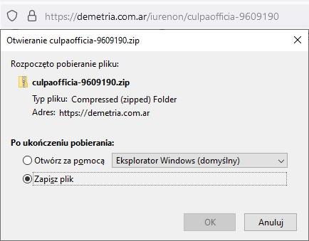 [2] Okno pobierania archiwum zawierającego złośliwe oprogramowanie