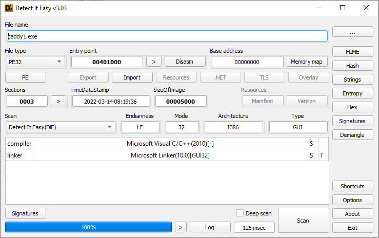 Zrzut wyników otrzymanych z programu Detect It Easy