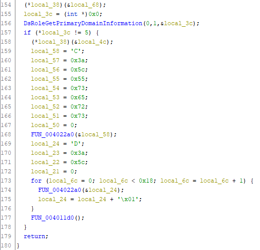 Jeśli złośliwe oprogramowanie natrafi na folder, jest on weryfikowany pod kątem bycia katalogiem bieżącym, ukrytym lub systemowym. Jeśli wymienione warunki nie są spełnione, funkcja wywołuje samą siebie ze ścieżką aktualnie sprawdzanego folderu (przeszukiwanie dokonuje się rekurencyjnie).