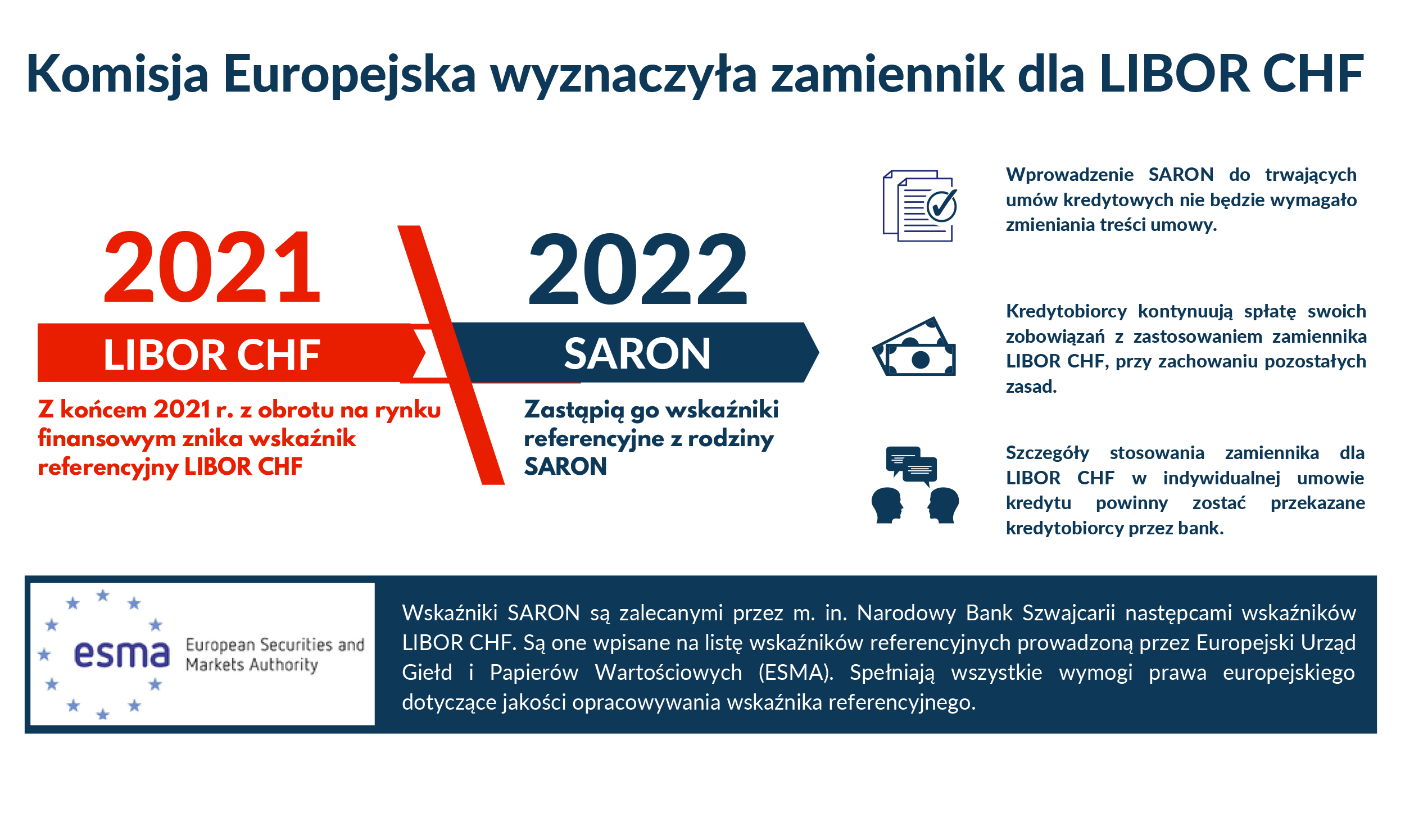 Szczegóły stosowania zamiennika dla LIBOR CHF w indywidualnej umowie kredytu powinny zostać przekazane kredytobiorcy przez bank.