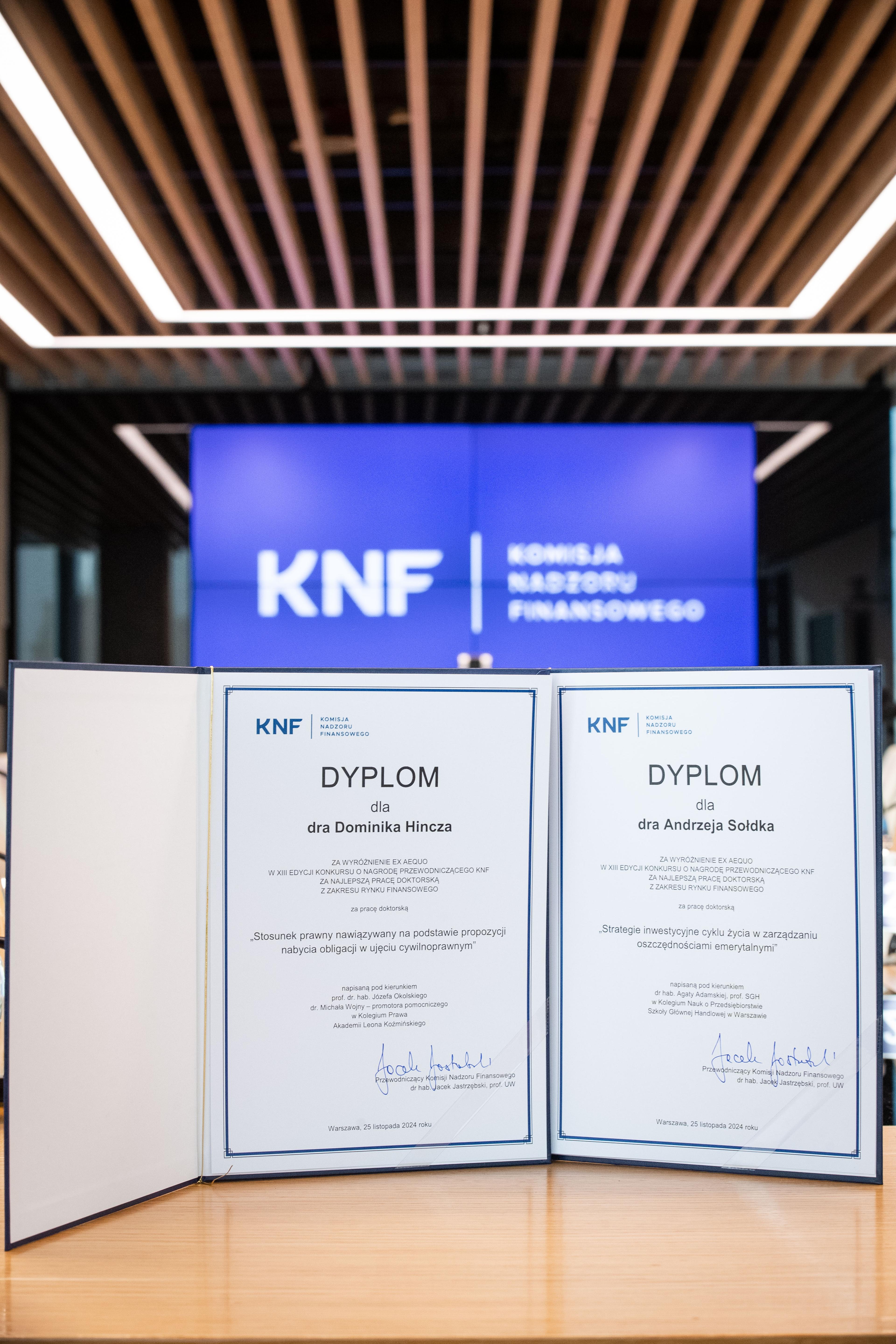 25 listopada 2024 roku odbyło się spotkanie Jacka Jastrzębskiego, Przewodniczącego Komisji Nadzoru Finansowego, Marcina Mikołajczyka, Zastępcy Przewodniczącego Komisji Nadzoru Finansowego oraz Michała Kruszki, Przewodniczącego Kapituły Konkursu, z autorami wyróżnionych prac doktorskich, podczas którego nastąpiło oficjalne ogłoszenie wyników XIII edycji Konkursu i wręczenie wyróżnień.