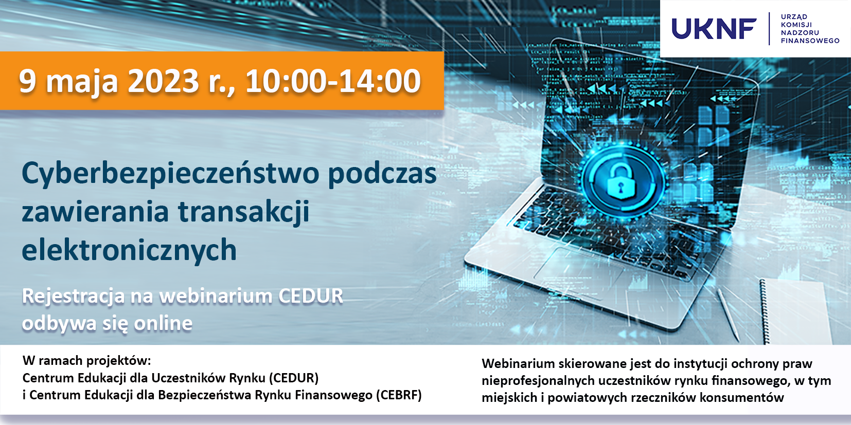 Webinarium było zorganizowane przez Urząd Komisji Nadzoru Finansowego w ramach projektów: Centrum Edukacji dla Uczestników Rynku – CEDUR oraz Centrum Edukacji dla Bezpieczeństwa Rynku Finansowego – CEBRF.