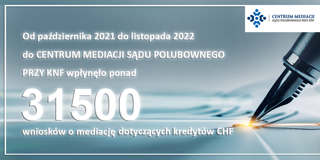 Do tej pory do Centrum Mediacji Sądu Polubownego przy KNF wpłynęło ponad 31 500 wniosków o mediację dotyczących kredytów indeksowanych/denominowanych do waluty innej niż waluta polska.
