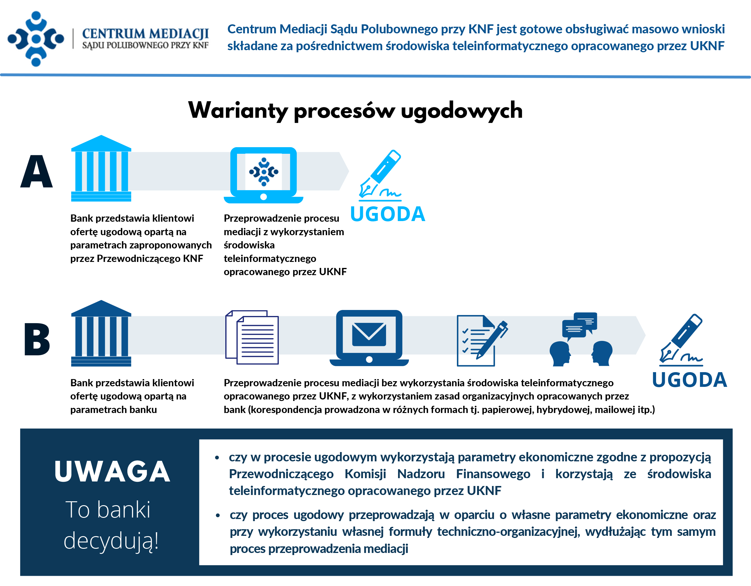 Przed podjęciem decyzji o skierowaniu sprawy do mediacji zachęcamy do zapoznania się z dodatkowymi informacjami zawartymi na stronach internetowych banków: